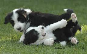 The Bearded Collie may have earned its nickname “bouncing Beardie” because the dogs would work in thick underbrush on hillsides; they would bounce to catch sight of the sheep. Beardies also have a characteristic way of facing a stubborn ewe, barking and bouncing on the forelegs. Whatever the reason, a typical Bearded Collie is an enthusiastic herding dog which requires structure and care; it moves stock with body, bark and bounce as required. Very few Beardies show “eye” when working; most are upright.