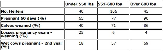 Reproductive Performance in Hereford Heifers as Influenced by Weight at Start of Breeding