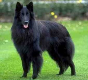 The Groenendael is characterized by a long double coat in solid black. Fanciers consider that white marking are to be confined to a small patch on the chest (not to extend to the neck) and white toes. Coat texture is stiff, tight, and thick, developed to withstand the elements.