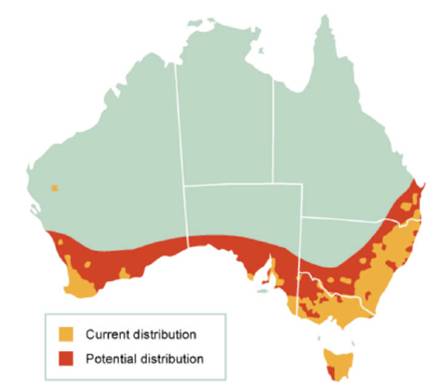 Blackberry is found throughout temperate Australia, from just north of the Queensland-New South Wales border across southern Australia in areas where the annual rainfall exceeds 700 mm. It is thought to have reached the limits of its potential distribution. However, it may still spread further within its climatic limits.