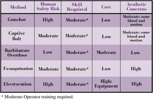 Ethical and humane standards of euthanasia DO NOT permit the following methods of euthanasia in the bovine: