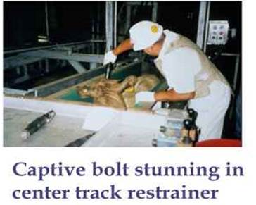 The issue of stunner problems with brain tissue contamination must be kept in perspective. The carcass splitting saw also spreads spinal cord tissue on the carcass. Splitting saw contamination may possibly be worse than contamination from a standard penetrating captive bolt.