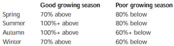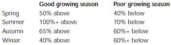 The predicted growth rate could vary markedly between good and poor growing seasons.