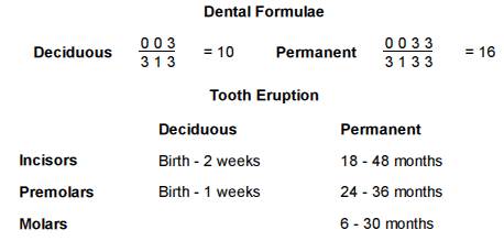 In the dental formulae shown above, cattle are depicted as having 3 incisors and 1 canine tooth. Some authors prefer to state that they have 4 incisors, with the canine tooth refered to as the fourth or corner incisor.
