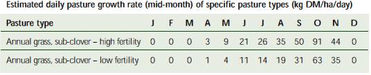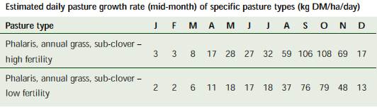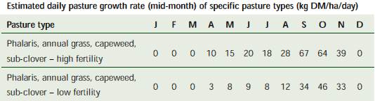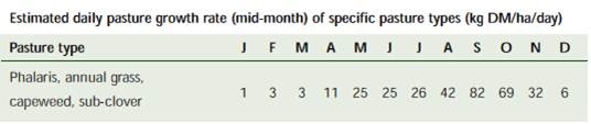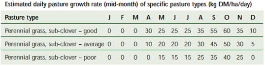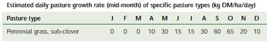 Source: South Australia PROGRAZE Manual, Appendix D (for further information and the assumptions on which these tables are based, see the South Australian PROGRAZE Manual or visit www.prisa.sa.gov.au).
