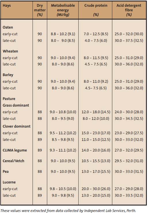 The average nutritive values of Western Australian hays are recorded in Table 3.