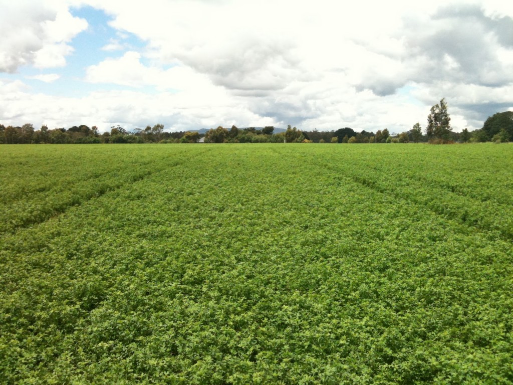 However, seeding rates as high as 25 kg/ha are being used commercially in some irrigation areas. Reasons given by experienced growers for this include improved competition with weeds, to obtain finer stem thickness, and to obtain an earlier cut. However, the use of herbicides is a cheaper way to control weeds, especially as an early cutting may limit the development of adequate root reserves and the subsequent productivity of the stand. Very high plant populations are suspected as the cause of higher leaf disease infections, owing to the humidity in the canopy of those stands.