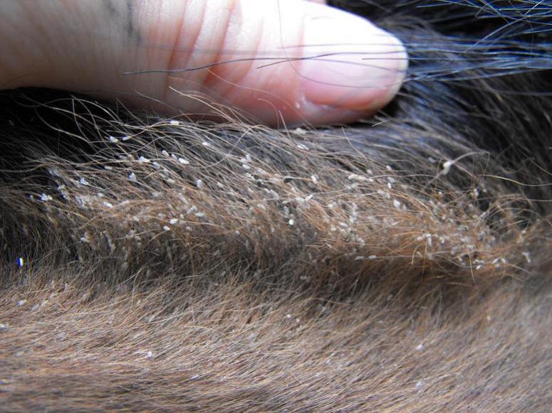 Lice egg casings and dead skin in the fleece, which is a serious fault, will lower the dying quality of the fibre, and make handling it unpleasant.