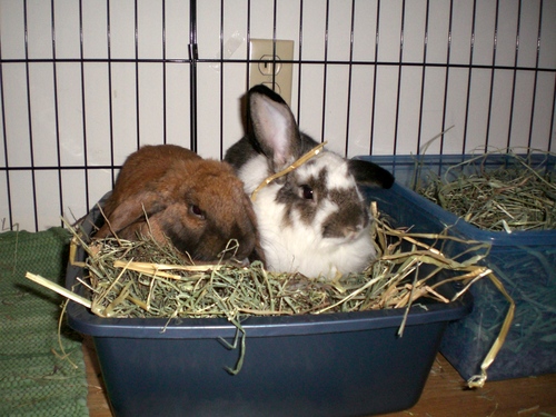 It is helpful to put several layers of newspaper under the hay, to absorb urine so that your rabbit is not standing in the urine. Most newspapers today are using soy-based ink which is safe for your rabbit: Check with your local newspaper to make sure first.