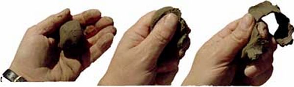 • Smooth soil ball that handles like plasticine and can be moulded into rods without breaking.