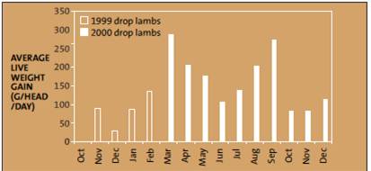Figure 1 shows the moderate, average monthly growth rates of sucker lambs born in 1999 and 2000.