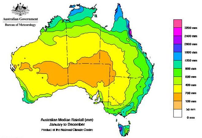 Knowing the range of rainfall patterns, whether it is annually, seasonally or month by month is far more important than knowing a Median figure. Rainfalls in places like Australia can vary enormously from year to year, from season to season and even from month to month (and when compared against the same monthly rainfalls from other years).