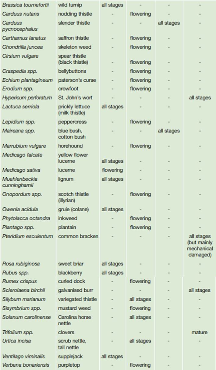 Having read through these tables and identified plants from your area, you should check for any toxicity issues by reference to the article Plants Toxic to Goats.