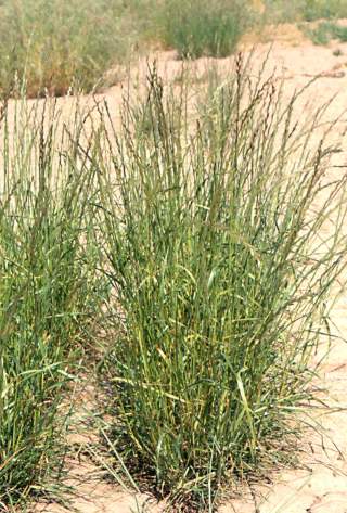 Densely tufted, multi-tillered perennial with fibrous root system.