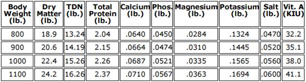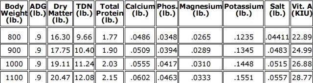 Table 1: Daily Nutrient Requirements of Bred Yearling Heifers (Last 1/3 pregnancy)