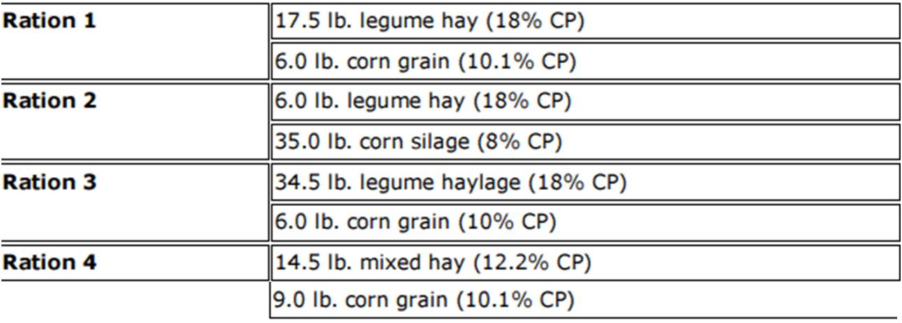 Table 2. Daily Nutrient Requirements of the First Calf Heifer (condition score 3, ADG .75, nursing a calf)