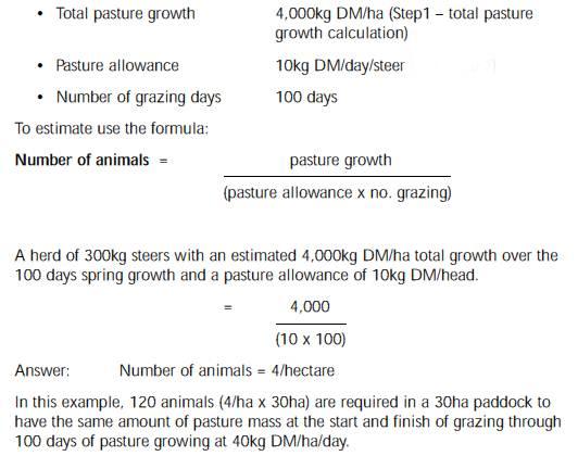 In this example, there is an average pasture growth rate of 40kg DM/ha/day for 100 days for a normal spring season in southern Australia.