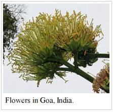 Sisal is a valuable forage for honey bees because of its long flowering period. It is particularly attractive to them during pollen shortage. The honey produced is however dark and has a strong and unpleasant flavour.
