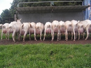 ” Long pendulous udder with teats close to the ground.