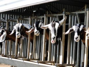 Goats lined up ready to Be Milked