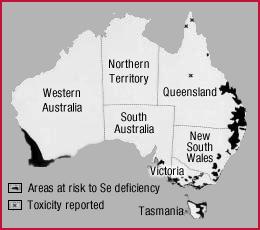 This map highlights the main regions where selenium deficiencies occur. It is a guide only and does not cover all incidences of selenium deficiency.