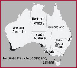 The map below highlights the main regions where cobalt deficiencies commonly occur. This is a guide only and does not cover all incidences of cobalt deficiency.