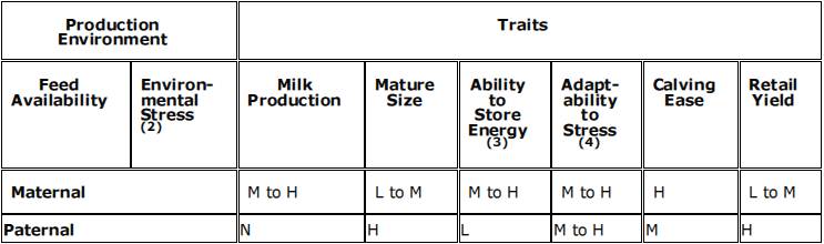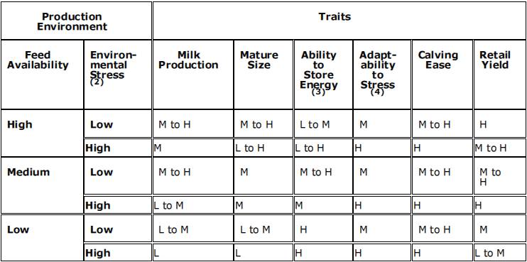 The environments and the resources available to raise beef cattle are as varied as the breeds themselves (Table 1). Notice the tremendous variability in the available breeds. Another factor to consider is the large degree of variability that exists within a breed. Breeding decisions involve individual animals, not breed averages, so selection of the right individuals within a breed is critical. Breed differences like these can be blamed for product inconsistency, but they can also be exploited to produce adapted animals and a consistent product.